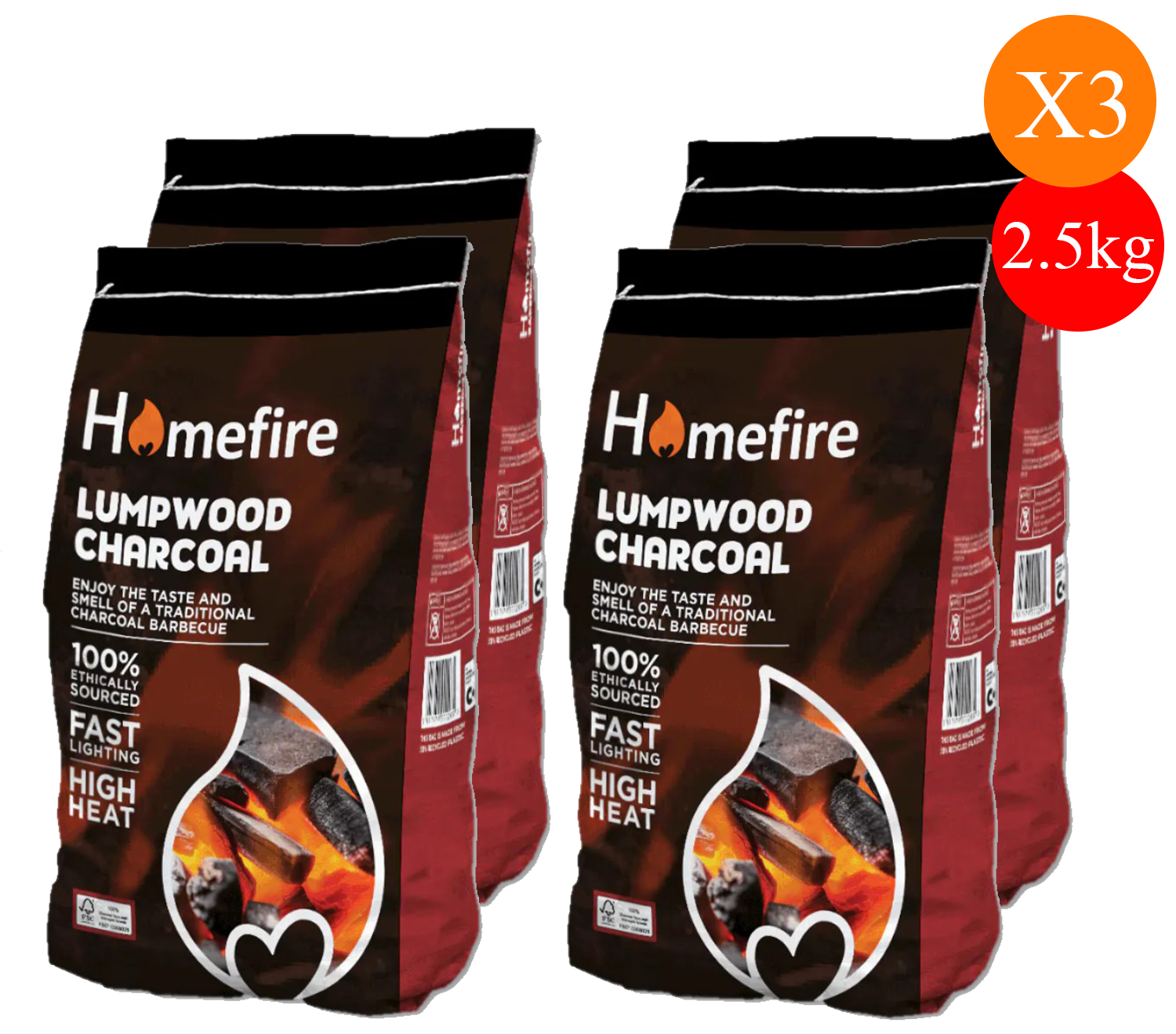 Homefire Lumpwood Charcoal 2.5kg – Fast-Lighting, High-Heat BBQ Fuel 4PACK